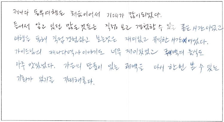 제목 | 2023년 03월 24일 출발 퀘벡 자필후기 | ||