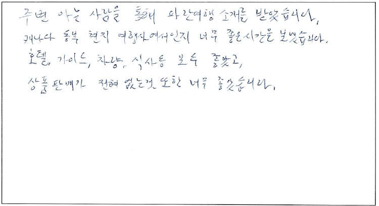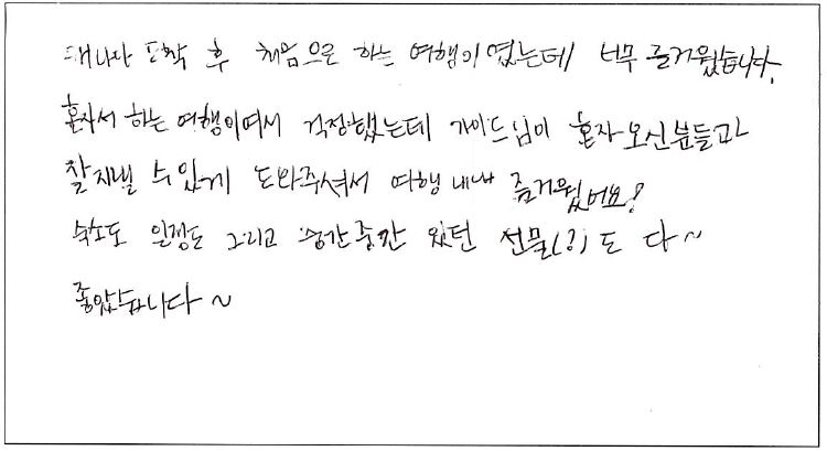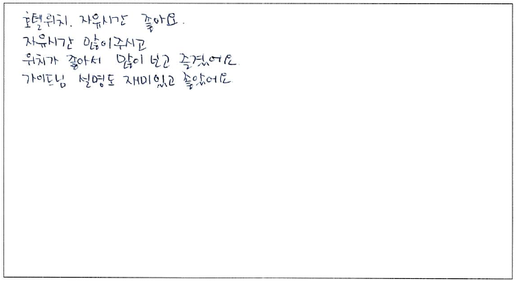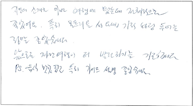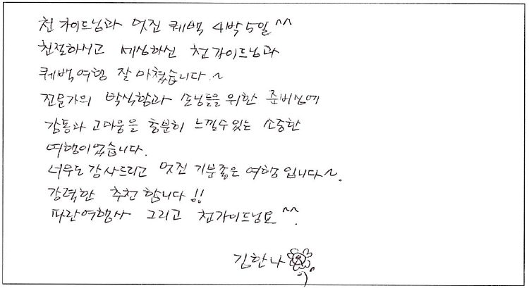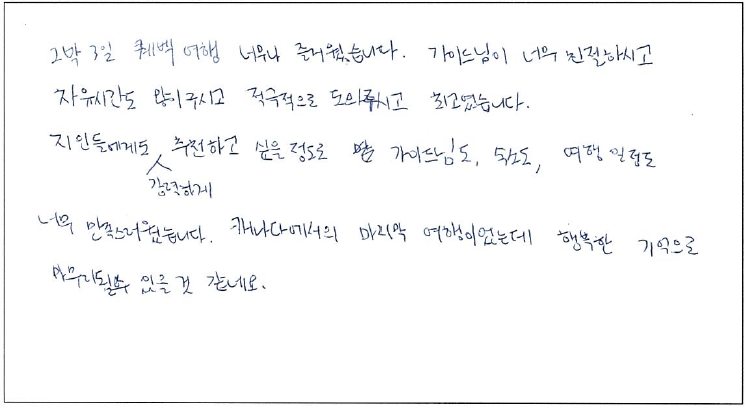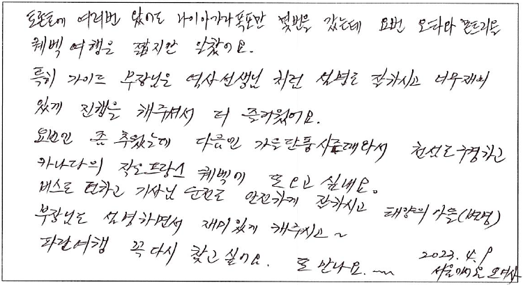 제목 | 2023년 04월 07일 출발 퀘벡 자필후기 | ||