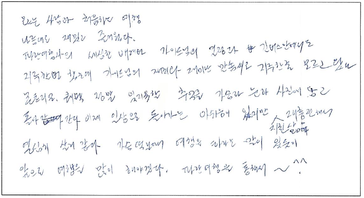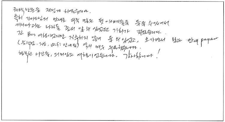 제목 | 2023년 04월 14일 출발 퀘벡 자필후기 | ||