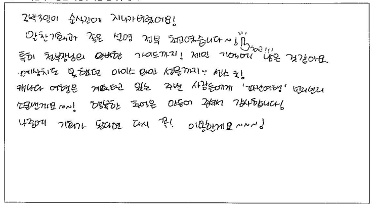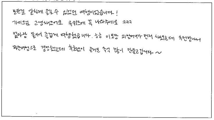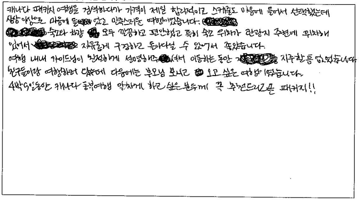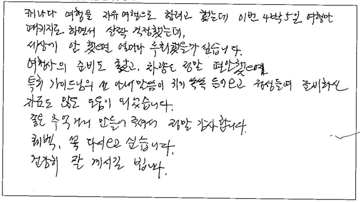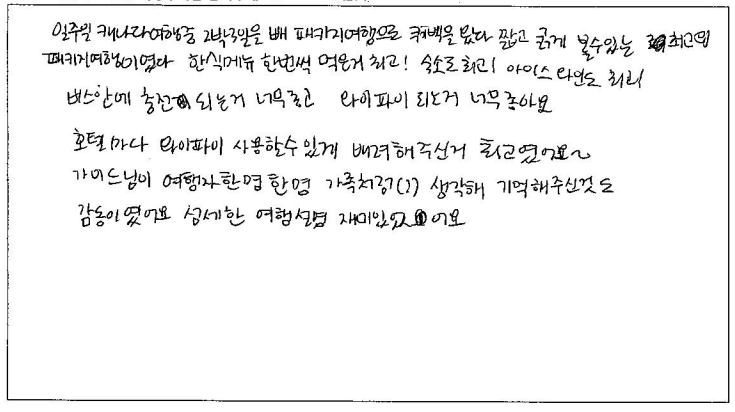 제목 | 2023년05월23일 출발 퀘벡 자필후기 | ||