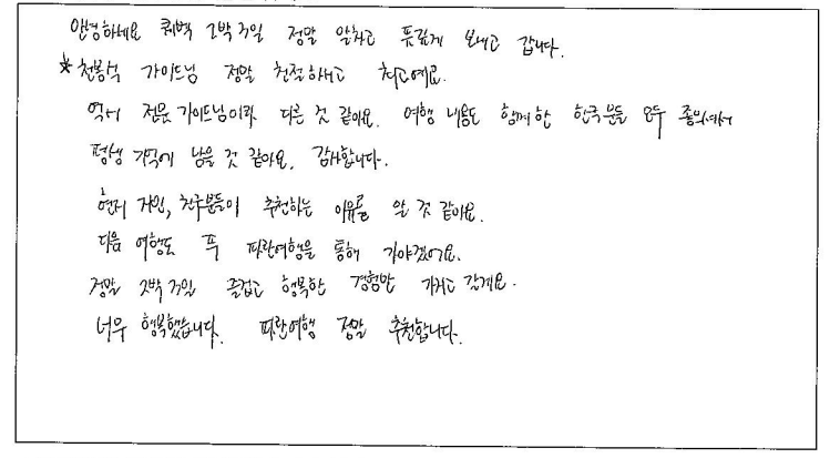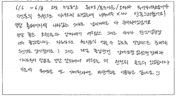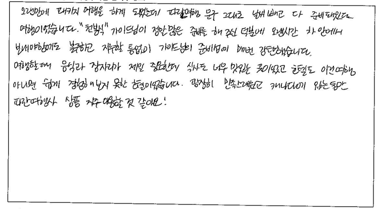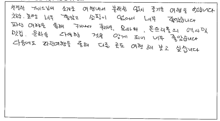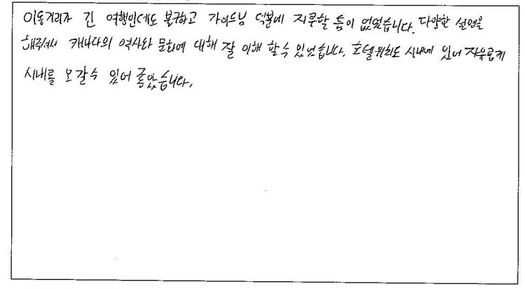 제목 | 2023년06월06일 출발 퀘벡 자필후기 | ||