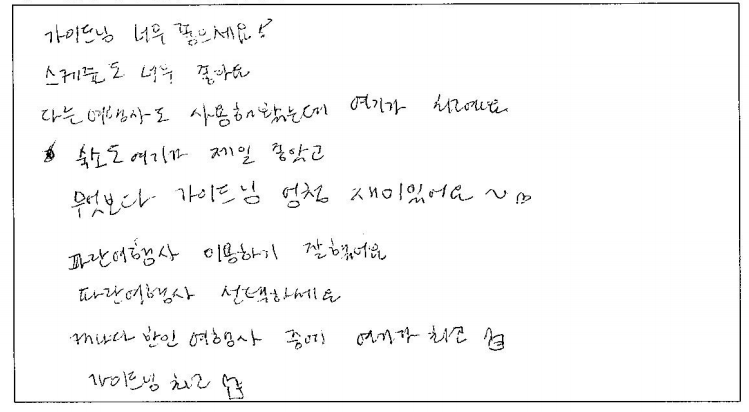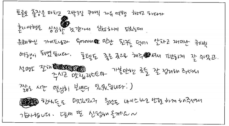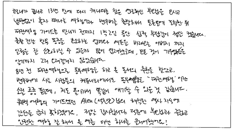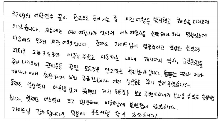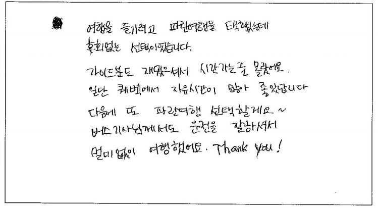 제목 | 2023년07월01일 출발 퀘벡 자필후기 | ||