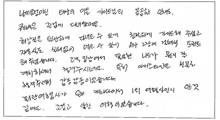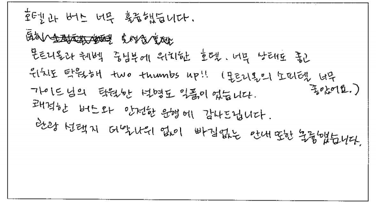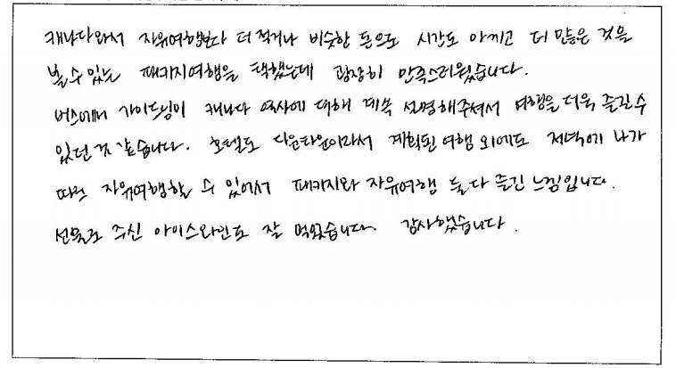 제목 | 2023년07월14일 출발 퀘벡 자필후기 | ||