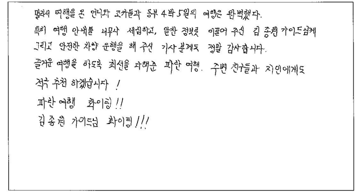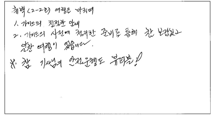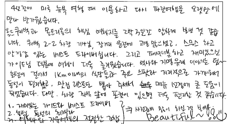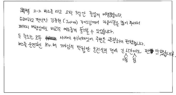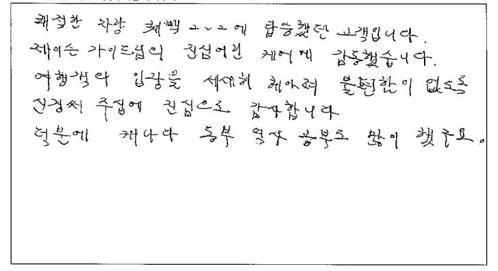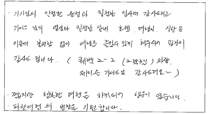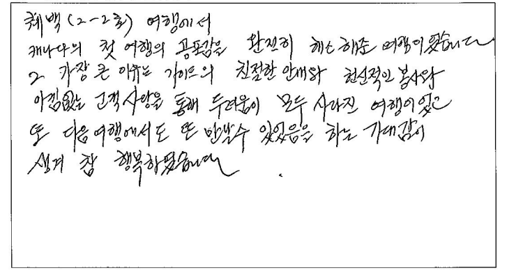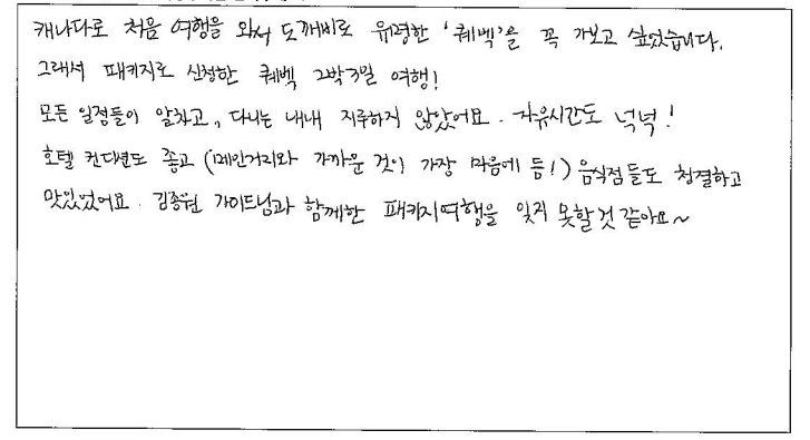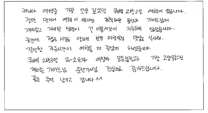 제목 | 2023년08월01일 출발 퀘벡 자필후기(2-2호차) | ||
