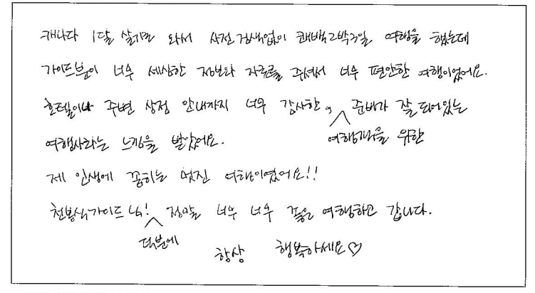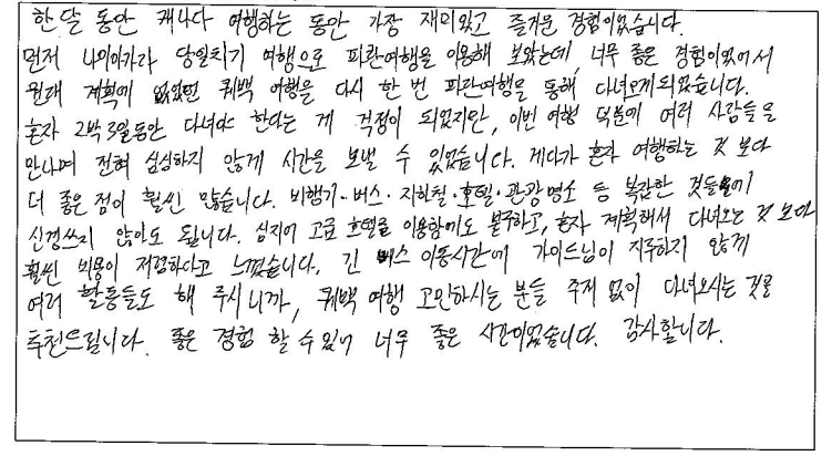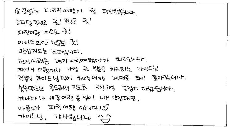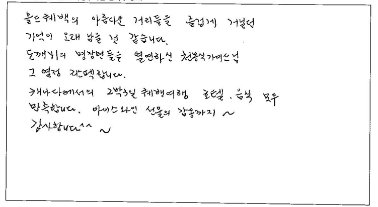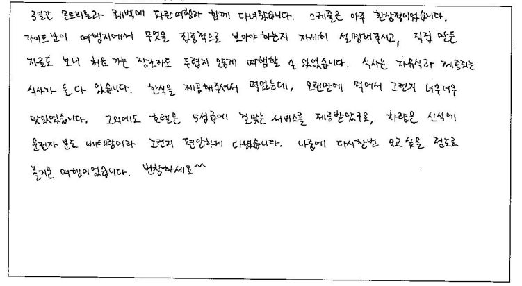 제목 | 2023년08월11일 출발 퀘벡 자필후기 | ||
