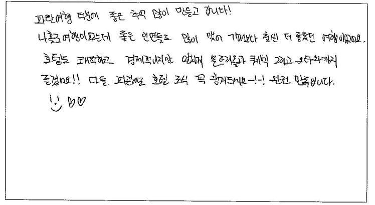 제목 | 2023년08월28일 출발 퀘벡 자필후기 | ||
