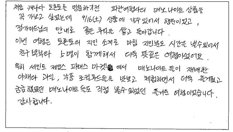제목 | 2023년09월16일 출발 메노나이트+스트라트포드1일 자필후기 | ||