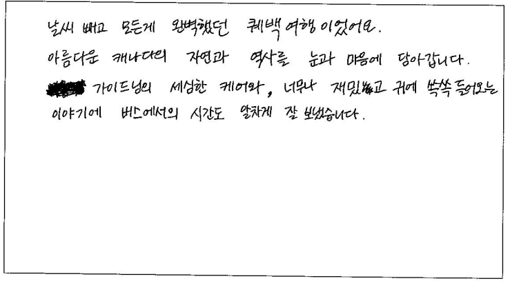 제목 | 2023년09월18일 출발 퀘벡+몽트랑블랑 자필후기 | ||