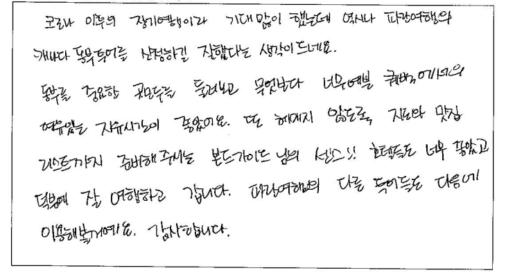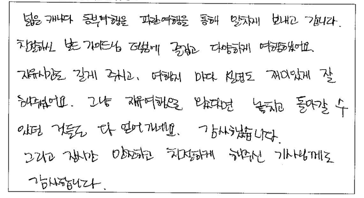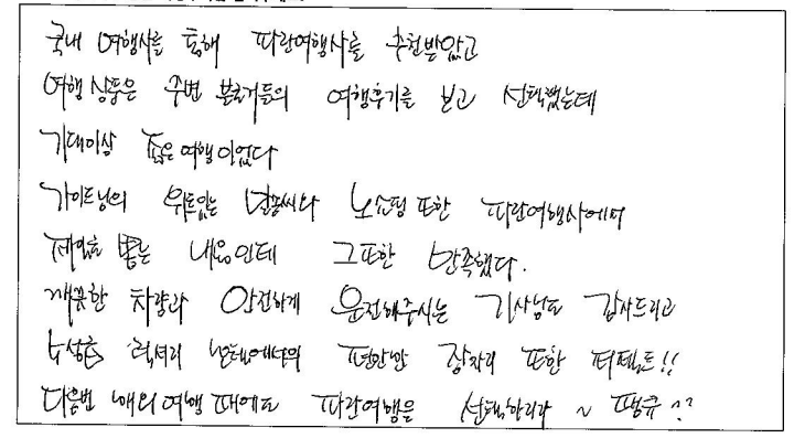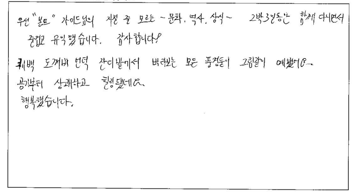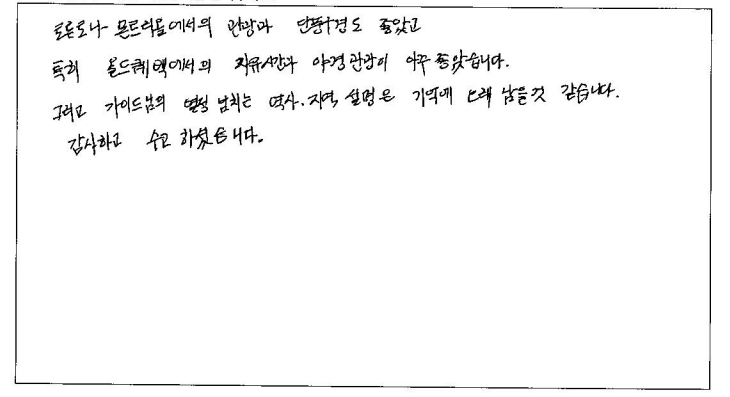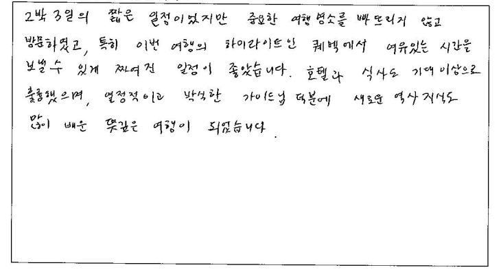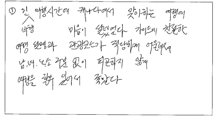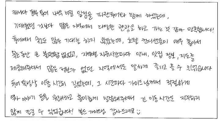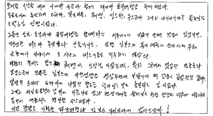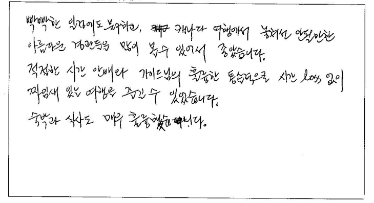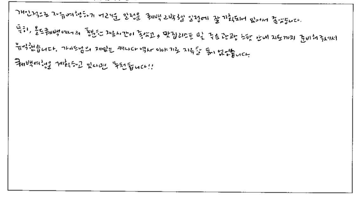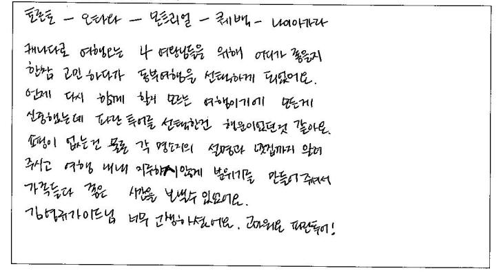 제목 | 2023년09월25일 출발 퀘벡+몽트랑블랑 자필후기(2-2호차) | ||