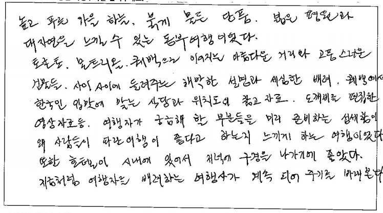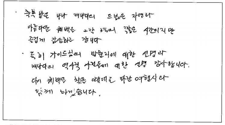 제목 | 2023년09월30일 출발 퀘벡+몽트랑블랑 자필후기(2-1호차) | ||