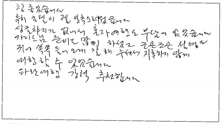 ![]() 편하게 여행할 수 있었어요 다시 언제 이렇게 여행할까 싶었네요 몽트랑블랑, 퀘벡 정말 다시 오고 싶습니다. 소중한 경험 만들어주셔서 감사합니다. 식사, 숙박, 이동 정말 만족스러워요 가이드님 설명도 너무 좋았고, 덕분에 효율적이고 편한 여행이었습니다. ![]() 높고 푸른 가을 하늘, 붉게 물든 단풍 넓은 평원과 대자연을 느낄 수 있는 동부여행이었다. 토론토, 몬트리올, 퀘벡으로 이어지는 아름다운 거리아 고풍스러운 건물들 사이사이에 들려주는 해박한 설명과 세심한 배려, 퀘벡에서 한국인 입맛에 맞는 식당과 위치도의 참고자료. 도깨비를 편집한 영상자료등, 여행자가 궁금해 할 부분들을 미리 준비하는 섬세함이 왜 사람들이 파란여행이 좋다고 하는지 느끼게 하는 여행이었다 또한, 호텔이 시내에 있어서 저녁에 구경을 나가기에 좋았다 지금처럼 여행자를 배려하는 여행사가 계속 되어 주기를 바래본다. ![]() 가이드 분의 자세하고 세세한 설명이 좋았다. 식사와 호텔도 매우 만족스러웠다 차량 기사님도 스무스하고 여유롭게 운전해주셔서 편안한 여행이 될 수 있었다. 이것저것 선물도 많이 챙겨주셨다. 재방문 의사 100% ![]() 덕분에 즐겁게 여행 잘 했습니다. 감사합니다~ 가이드님이 맛집 등등 정성스럽게 정보를 많이 제공해주셔서 유용하고 감사했습니다~ ![]() 파란여행, 이름처럼 맑고 밝은 여행이었어요 2-1 가이드님 정말 친절하고 준비 많이 하시고 최선을 다하시는 모습 정말 고마웠어요 기사님도 안전운행 최선을 다하시고 국내여행사 보다 훨씬 친절하고 최선이네요, 쇼핑 없는 것은 금상첨화입니다. ![]() 좋은 숙소 유익한 정보, 너무 재밌었어요~ 퀘벡은 자유여행 느낌이었어요 강추합니다! 행복했어요~ ![]() 참 좋았습니다 특히, 호텔이 제일 만족스러웠습니다 싱글차지가 없어서 혼자 여행도 부담이 없었습니다. 가이드님 준비도 많이 하셨고 조곤조곤 설명도 귀에 쏙쏙 들어오게 잘 해 주셔서 지루하지 않게 여행할 수 있었습니다. 파란여행 강력 추천합니다. ![]() 축복받은나라 캐나다의 드넓은 자연과 아름다운 퀘벡을 2박 3일의 짧은 시간이지만 즐겁게 감상하고 갑니다. 특히, 가이드님의 방문지에 대한 설명과 캐나다의 역사적 사건들에 대한 설명 감사합니다. 다시 퀘벡을 찾을 때에도 파란여행과 함께 하겠습니다. |