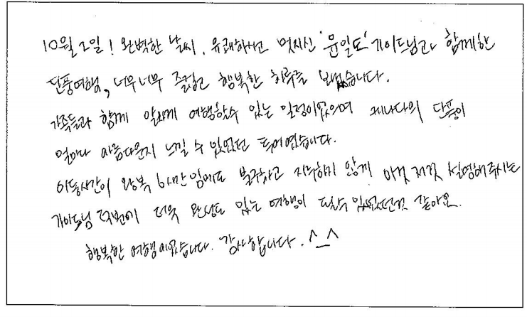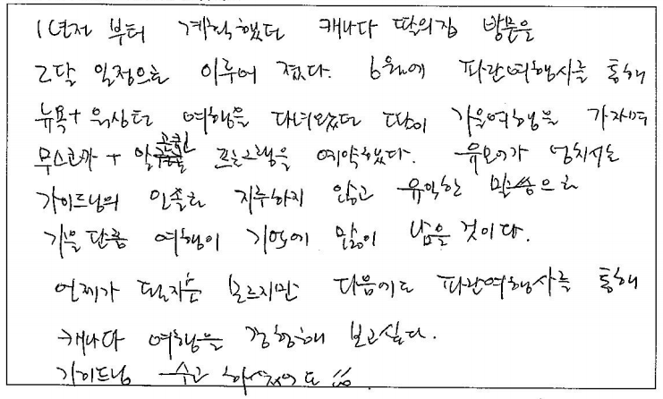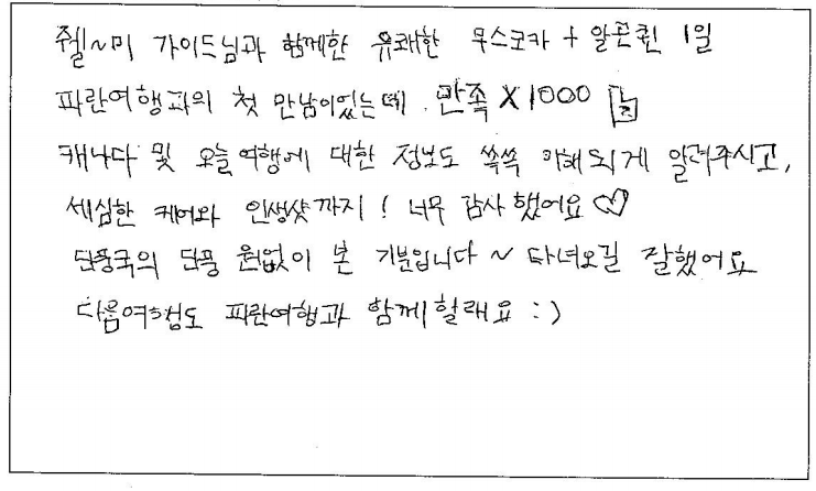 제목 | 2023년10월02일 출발 무스코카+알곤퀸1일 자필후기 | ||
