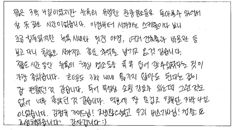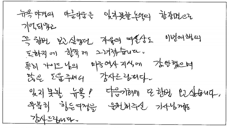 제목 | 2023년 10월 02일 출발 뉴욕+워싱턴 자필후기 | ||