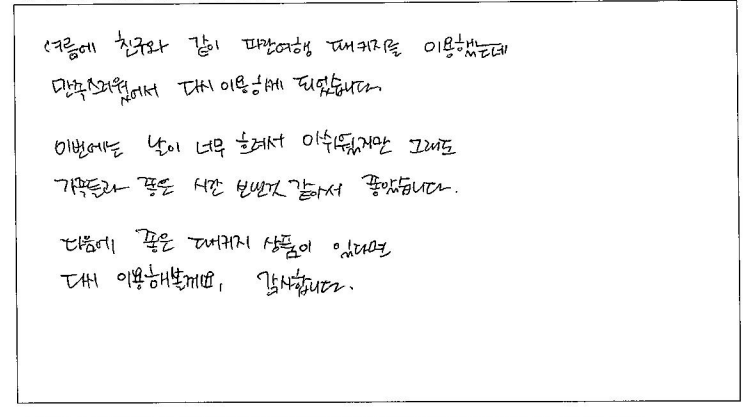 ![]() 엄마와 둘이서 여행을 하려고 이곳저곳 알아보다가 뉴욕에서 단풍여행을 왔습니다. 도착 후 다음 날 새벽에 이동하는 벅찬 일정이었지만 깨끗한 버스, 친절하신 기사분, 매 이동마다 배려해주시고 역사이야기, 재미있는 이야기, 도착지 관련 영상, 영화도 준비해주신 가이드님 덕분에 지루하지 않고 피곤하지 않게 여행했습니다. 숙소도 아주 좋았고 식사도 맛있게 잘 먹었습니다. 여행장소 모두 단풍과 캐나다의 매려을 마음것 즐길 수 있어서 좋았습니다. 퀘벡에서도 자유시간과 자유식 덕분에 원하는대로 여행할 수 있어서 더 의미있는 시간이 되었습니다. 좋은 시간 만들어주셔서 감사합니다! ![]() 작년에 파란여행을 알게되고 항상 이용하며 큰 만족감을 느껴서 부모님께서 캐나다에 놀러오신다하였는데 망설임없이 선택했습니다. 자유시간도 충분히 즐길 수 있도록 많이 주시고 평소 패키지여행은 원치 않는 쇼핑에 시간을 쓰는게 싫어서 투어선택을 선호하지는 않지만 파란여행은 이런 플랜이 없어서 좋았습니다. 가이드님 2박3일동안 너무 수고하셨습니다. ![]() 여름에 친구와 같이 파란여행 패키지를 이용했는데 만족스러웠어서 다시 이용하게 되었습니다. 이번에는 날이 너무 흐려서 아쉬웠지만 그래도 가족들과 좋은 시간 보낸 것 같아서 좋았습니다. 다음에 좋은 패키지 상품이 있다면다시 이용해볼게요, 감사합니다. ![]() 차량 기사님이 친절하시고 가이드분이 알려주신 여행지외 배경지식 덕분에 더 알차게 즐길 수 있었어요 비가 와서 아쉽긴 했지만 나름 내부의 분위기가 좋았어요 퀘벡의 단풍은 살면서 한 번쯤 볼만한 것 같아요. ![]() 아이랑 유학온지 2년차 몇번의 캐나다 여행을 파란여행과 함께했다. 다 하루일정이라 크게 생각지 않았는데 이번 장거리 여행으로, 안전운전 해주신 기사님, 열정적인 가이드님. 고객을 위해 최선을 다하는 모습에 아이 아빠도 생각도나고, 너무 편하게 여행한 것 같다. 다음 여행도 파란여행과 함께 이조합으로 다시 가고싶다. ![]() 한국에서부터 토론토 현지 여행사를 알아보며 어떤 여행을 선택할 지 고민하던 중 마침 시기가 단풍시기인 10월 초라 퀘벡 몽트랑블랑이 함께 기획된 여행상품을 선택했다. 현지에 와보니 핀치역에 위치한 파란여행이 우리 숙소와 가까워서 직접 상담할 수 있어서 좋았다. 여행 첫 날, 단풍철이라 정말 많은 여행객들이 여행사 앞에 있었고 다시 한 번 파란여행이 유명하다는 것을 느꼈다. 가도가도 끝없이 펼쳐지는 단풍에 한눈을 팔 수없을 정도로 행복했다. 버스안에서 여러가지 역사이야기를 연기와함께 재미있게 풀어주신 가이드님께도 감사드립니다. 버스도 깨끗하고 음식도 맛있고 호텔도 다운타운에 있어 좋았습니다. |