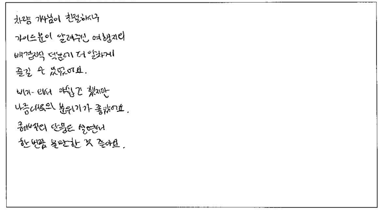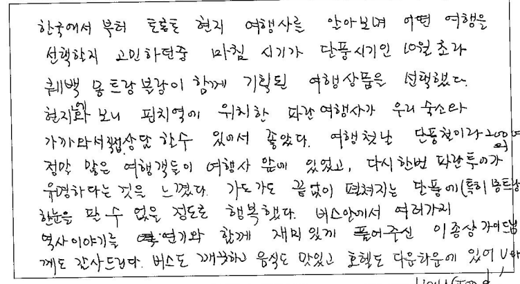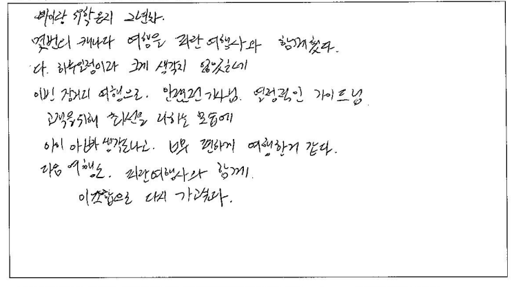 제목 | 2023년 10월 06일 출발 퀘벡+몽트랑블랑 자필후기(3-3호차) | ||