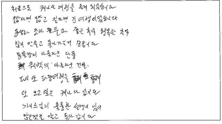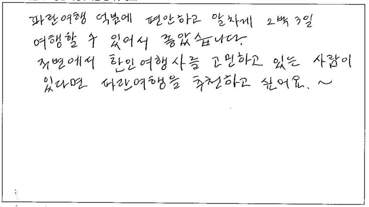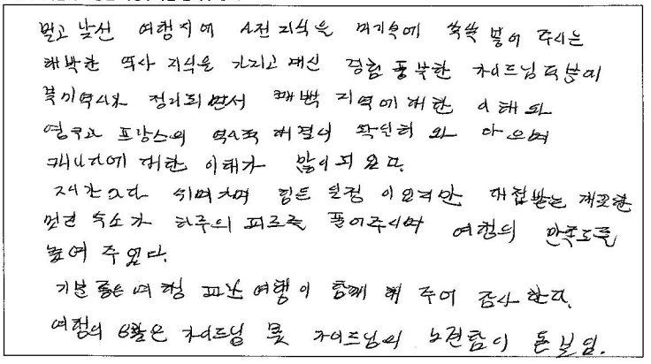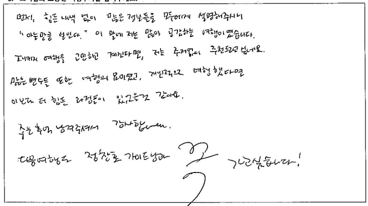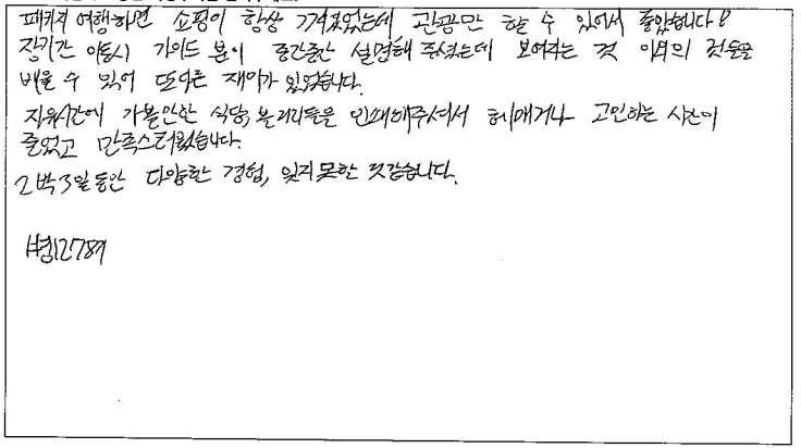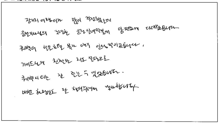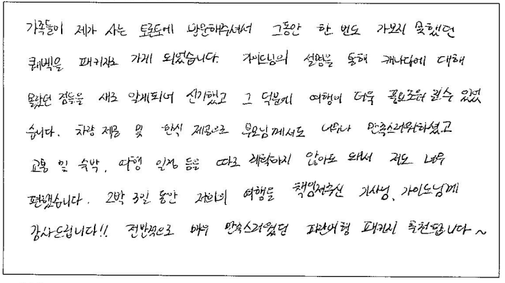 제목 | 2023년10월05일 출발 퀘벡+몽트랑블랑 자필후기(2-1호차) | ||