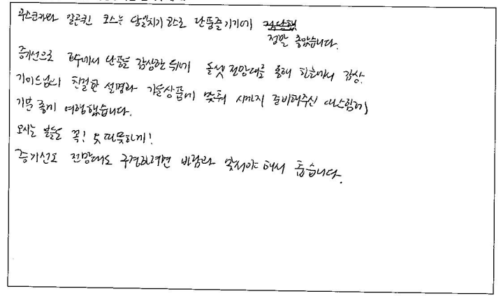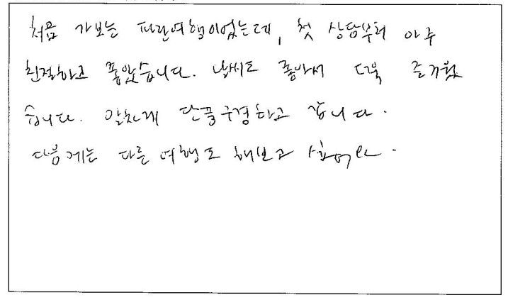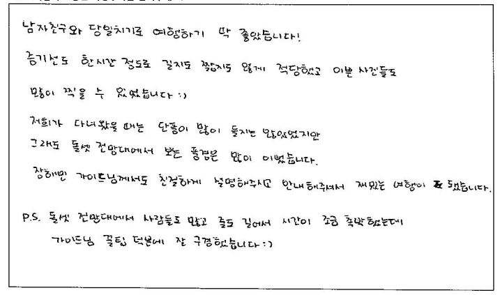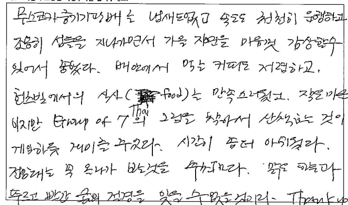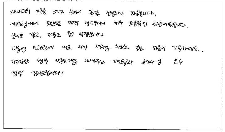 제목 | 2023년10월07일 출발 무스코카+알곤퀸1일 자필후기(2-1호차) | ||