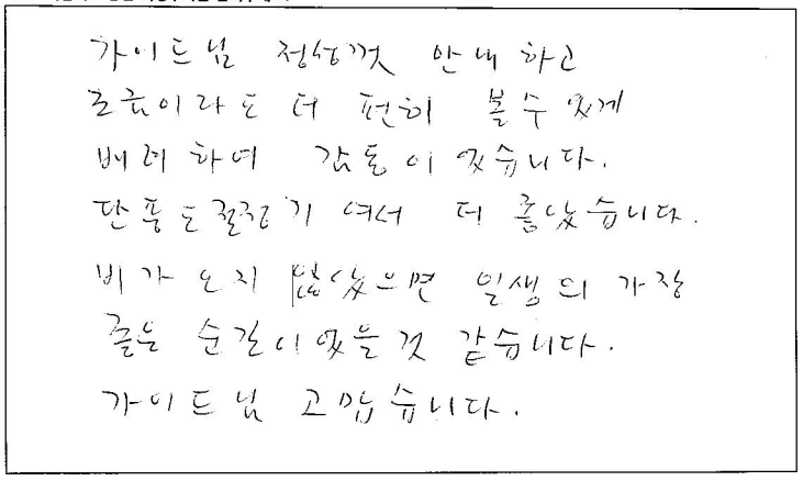 제목 | 2023년10월09일 출발 무스코카+알곤퀸1일 자필후기(2-2호차) | ||