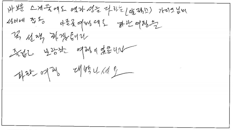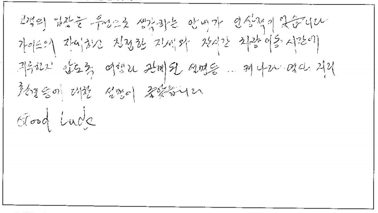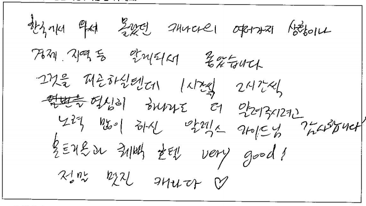 제목 | 2023년10월09일 출발 퀘벡+몽트랑블랑 자필후기(3-2호차) | ||
