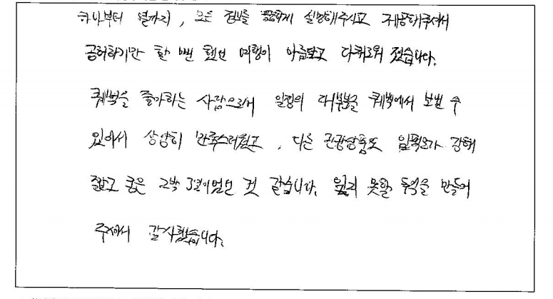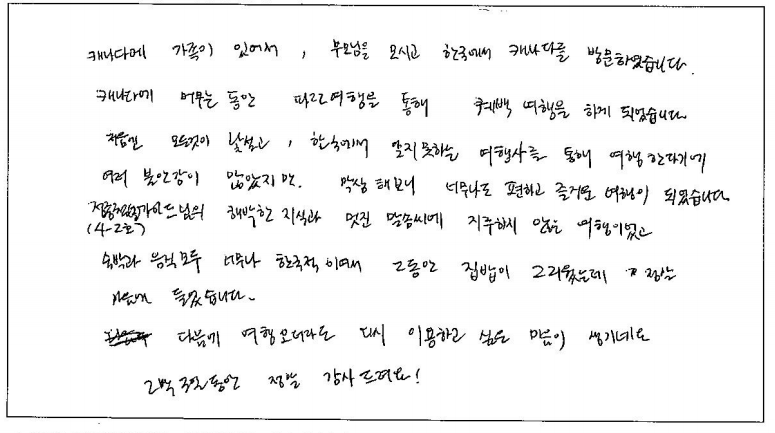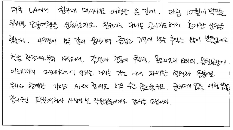 제목 | 2023년10월13일 출발 퀘벡+몽트랑블랑 자필후기(4-2호차) | ||