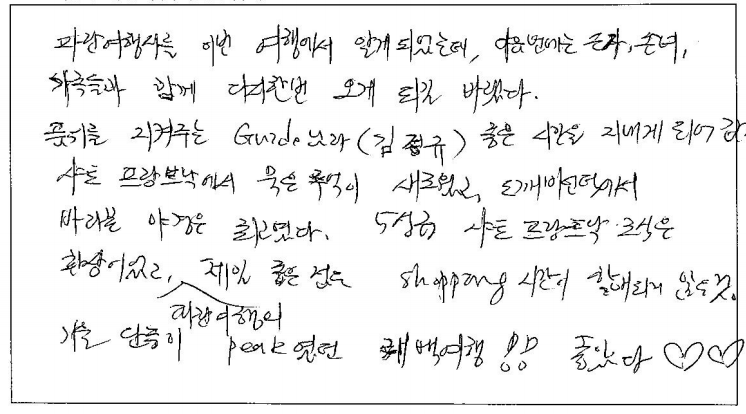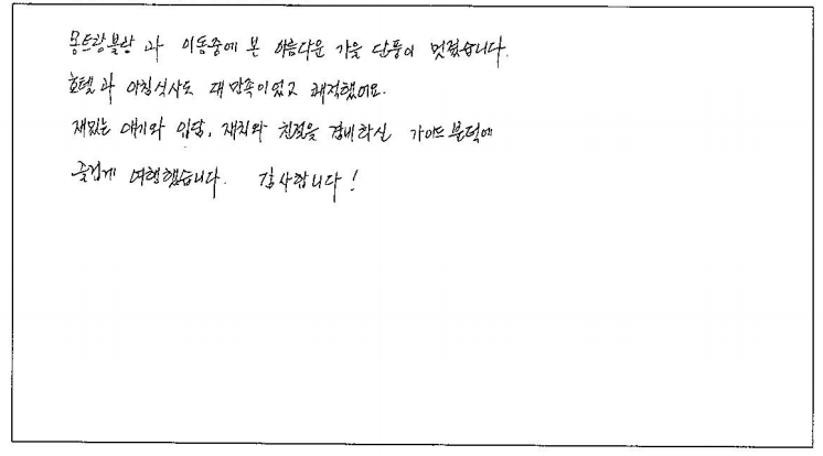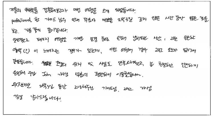 제목 | 2023년10월13일 출발 퀘벡+몽트랑블랑 자필후기(4-3호차) | ||