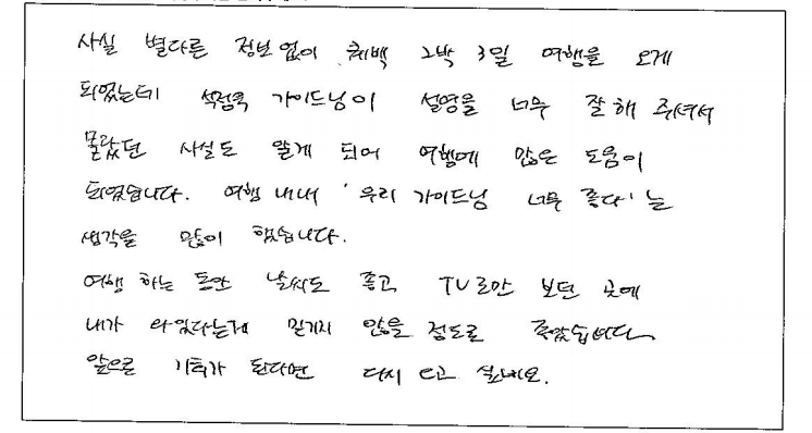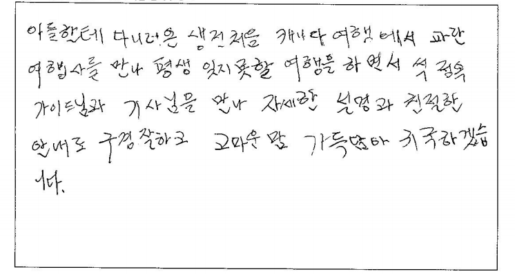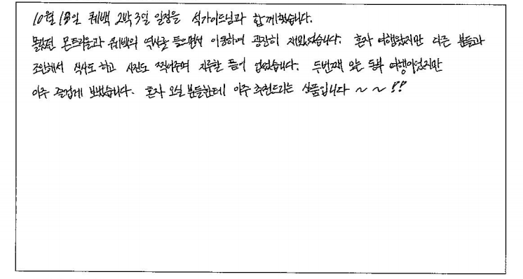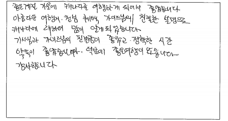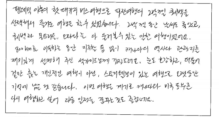 제목 | 2023년10월13일 출발 퀘벡+몽트랑블랑 자필후기(4-4호차) | ||