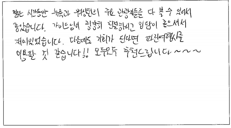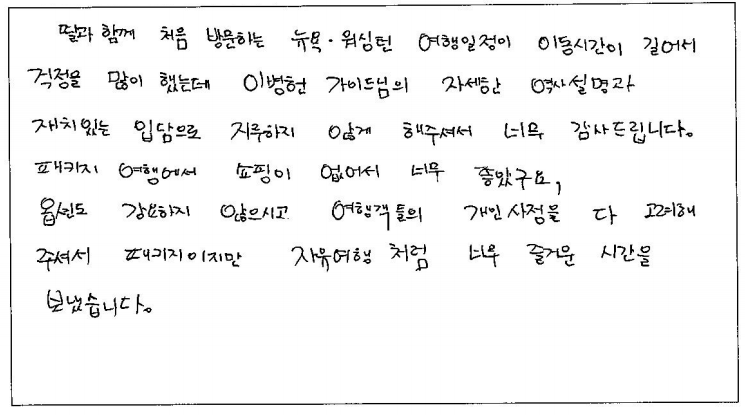 제목 | 2023년 10월 19일 출발 뉴욕+워싱턴 자필후기 | ||
