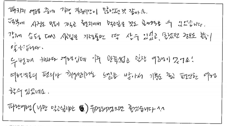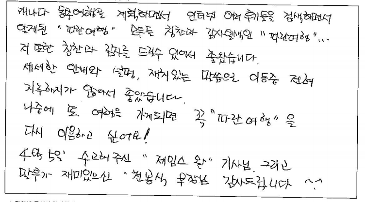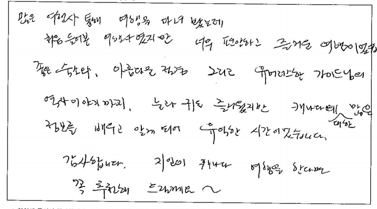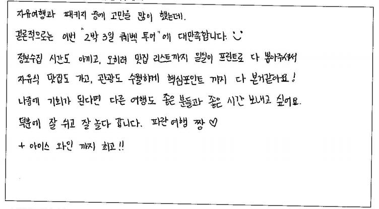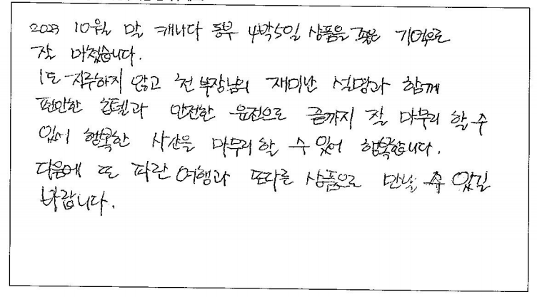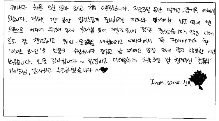 제목 | 2023년 10월 27일 출발 퀘벡 자필후기 | ||