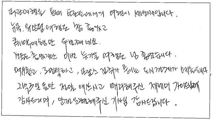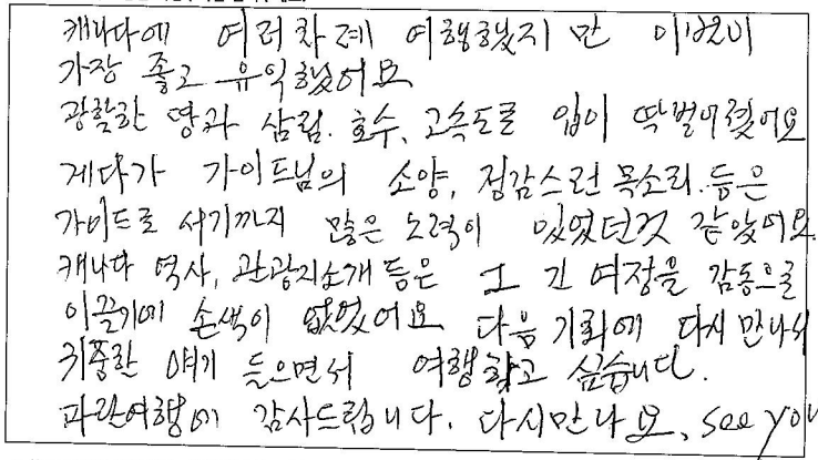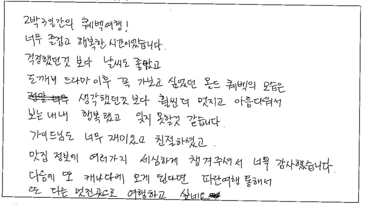 제목 | 2023년10월31일 출발 퀘벡 자필후기 | ||