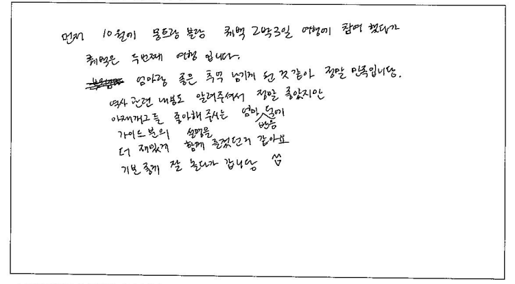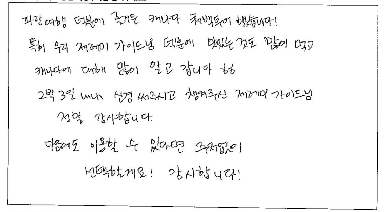 제목 | 2023년 11월 10일 출발 퀘벡 자필후기 | ||