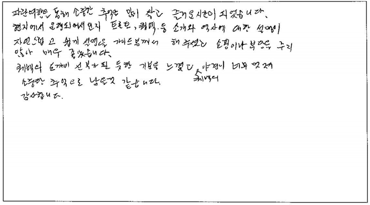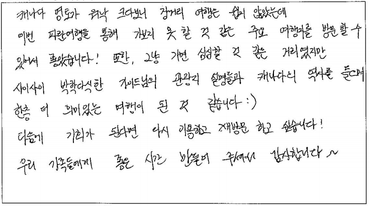 제목 | 2024년 01월 19일 출발 퀘벡 자필후기 | ||