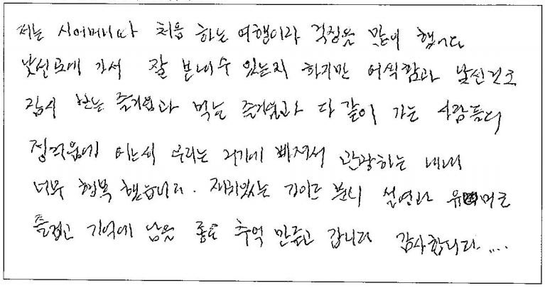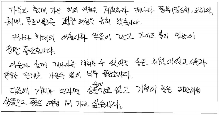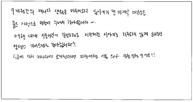 제목 | 2024년04월26일 출발 퀘벡 자필후기 | ||