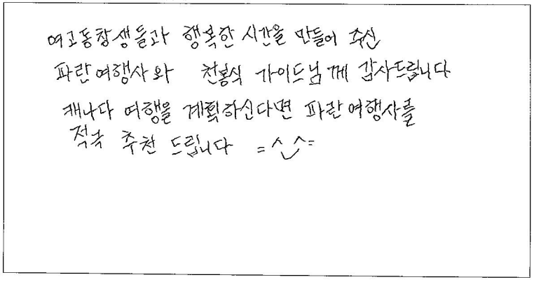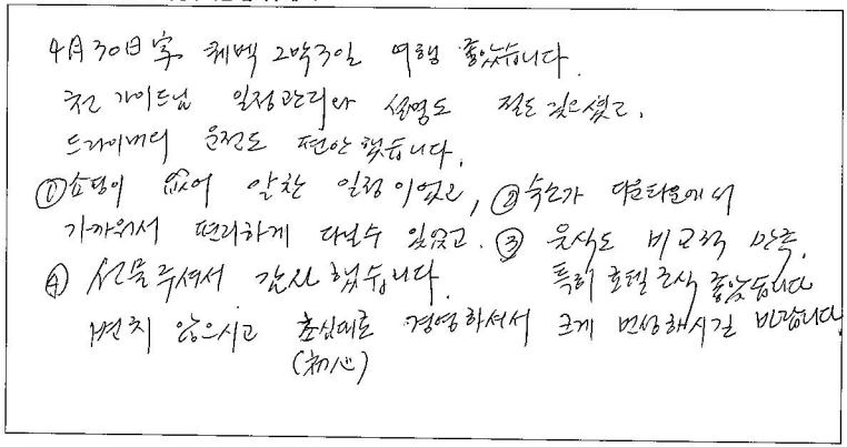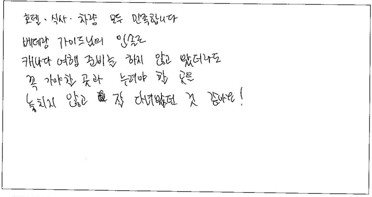 제목 | 2024년04월30일 출발 퀘벡 자필후기 | ||