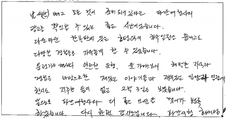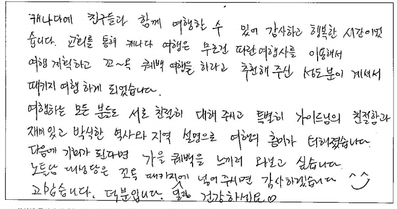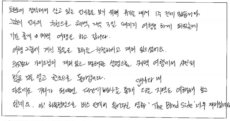 제목 | 2024년 05월 13일 출발 퀘벡 자필후기 | ||