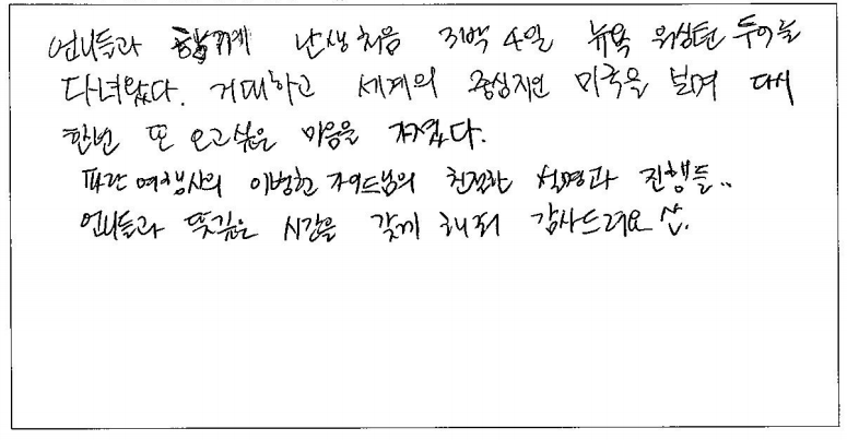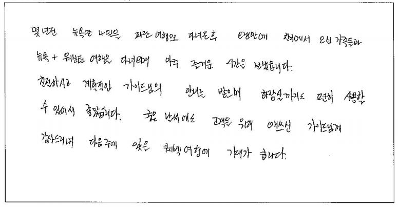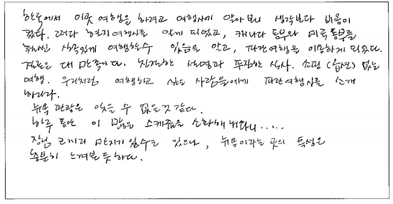 제목 | 2024년05월17일 출발 뉴욕+워싱턴3박4일 자필후기 | ||