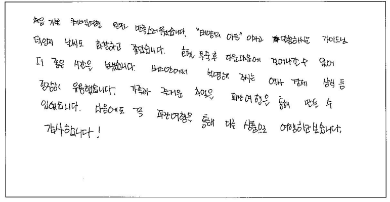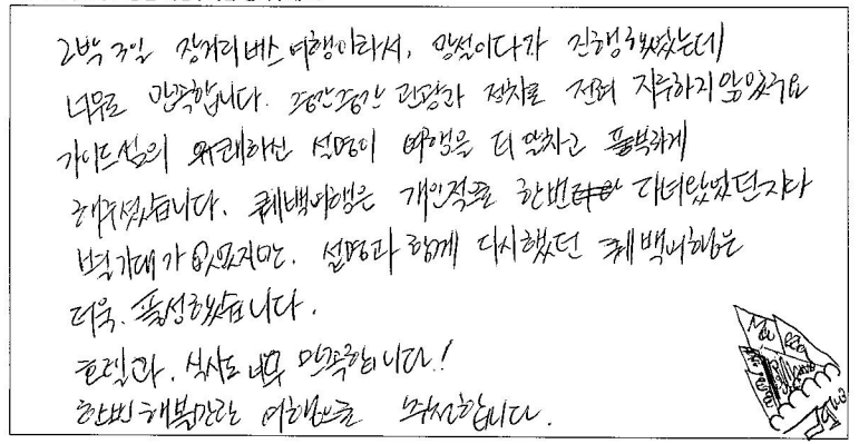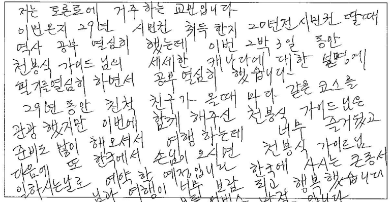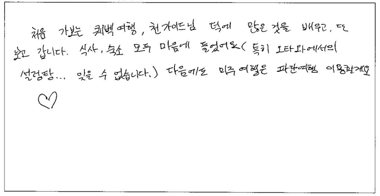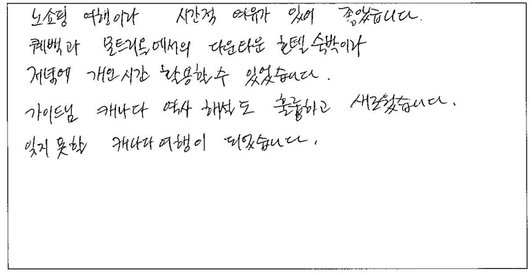 제목 | 2024년 05월 24일 출발 퀘벡 자필후기 | ||
