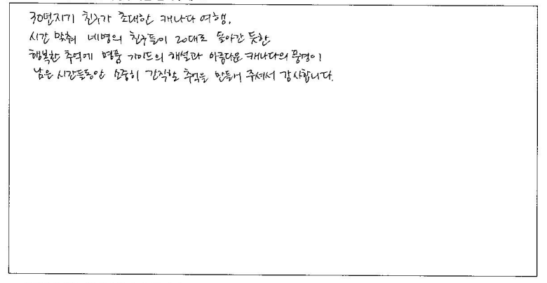 제목 | 2024년 06월 03일 출발 퀘벡 자필후기 | ||