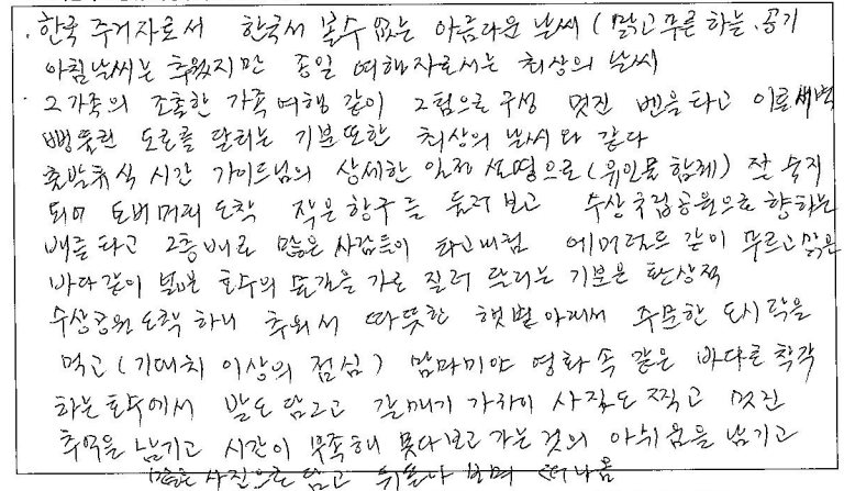제목 | 2024년06월15일 출발 토버모리1일 자필후기 | ||