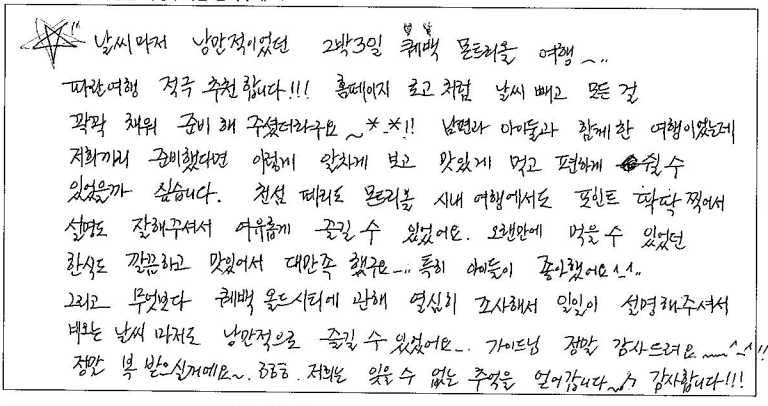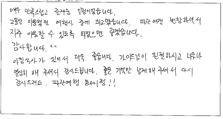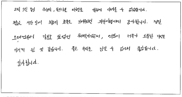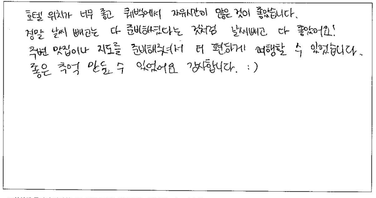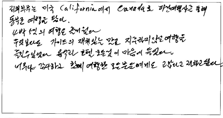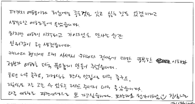 제목 | 2024년07월 09일 출발 퀘벡 자필후기 | ||