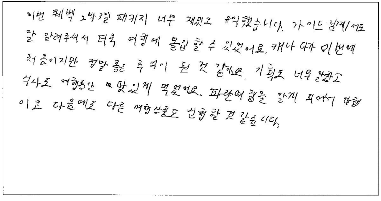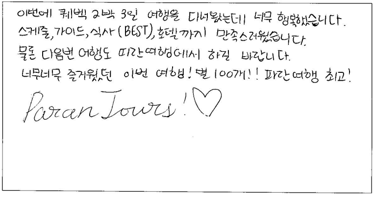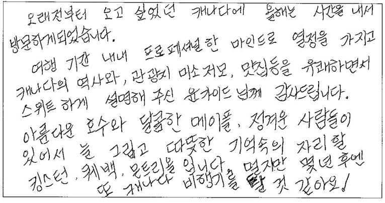 제목 | 2024년 07월 12일 출발 퀘벡 자필후기 | ||