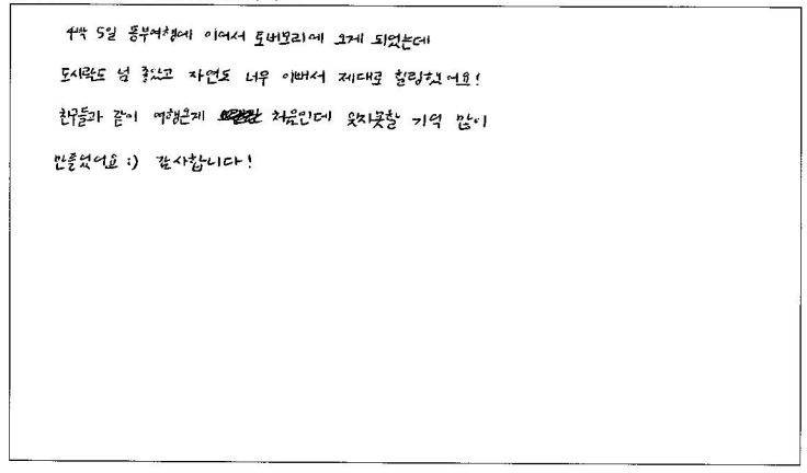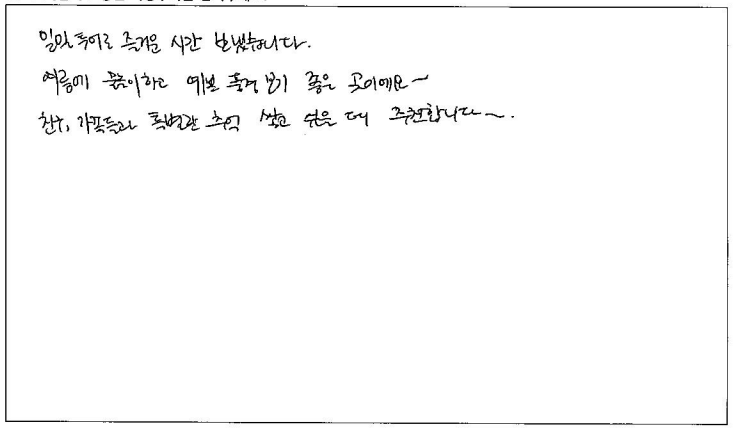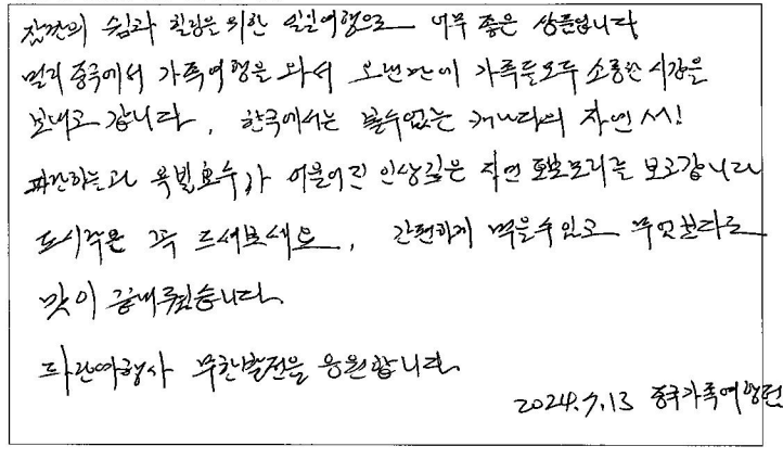 제목 | 2024년 07월 13일 출발 토버모리1일 자필후기 | ||