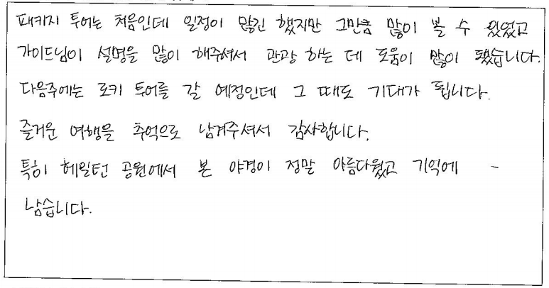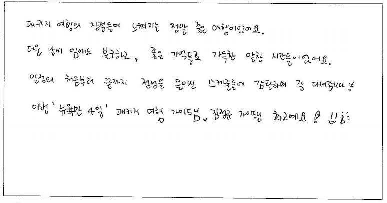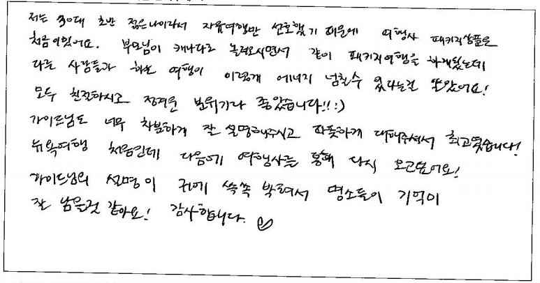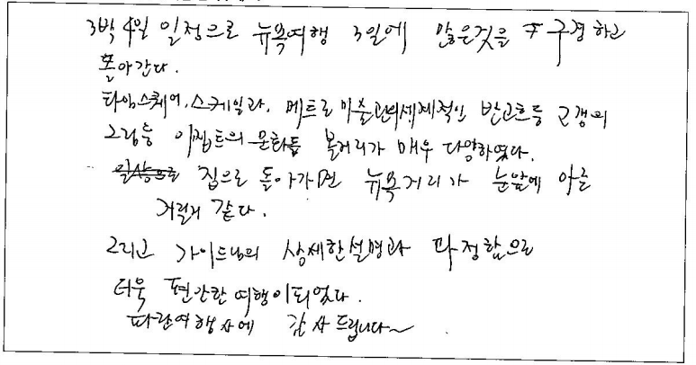 제목 | 2024년 07월 15일 출발 뉴욕만4일 자필후기 | ||