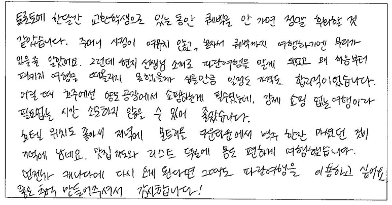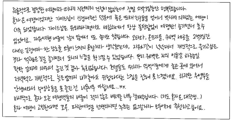 제목 | 2024년 07월 19일 출발 퀘벡 자필후기 | ||