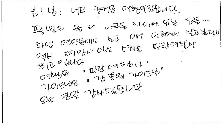 제목 | 2024년 08월 05일 출발 토버모리1일 자필후기 | ||