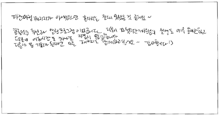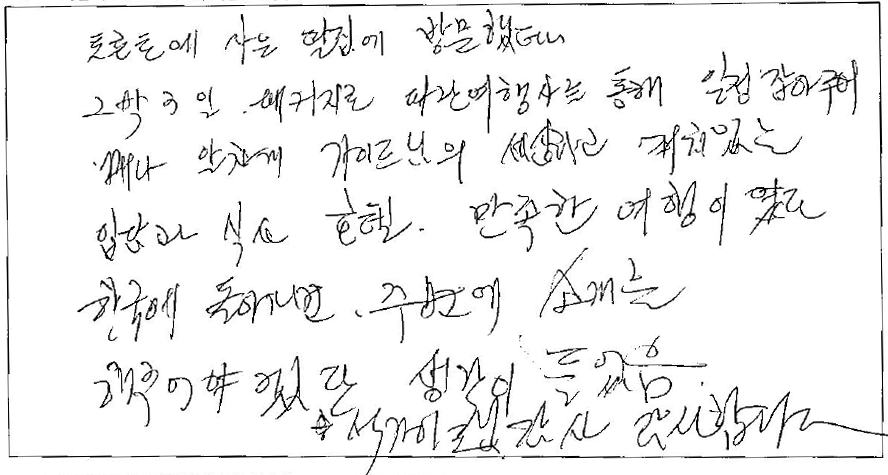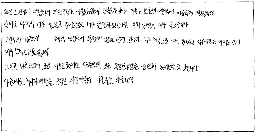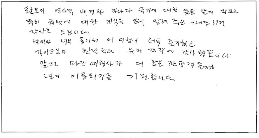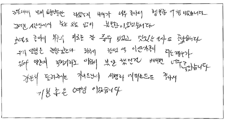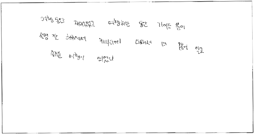 | 제목 | 2025년 10월 2일 출발 퀘벡+몽트랑블랑 자필후기(3-1호차) | ||