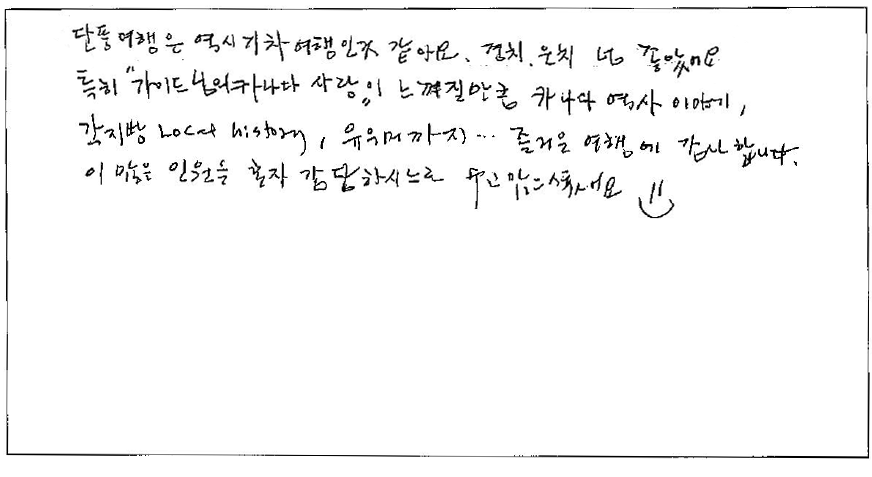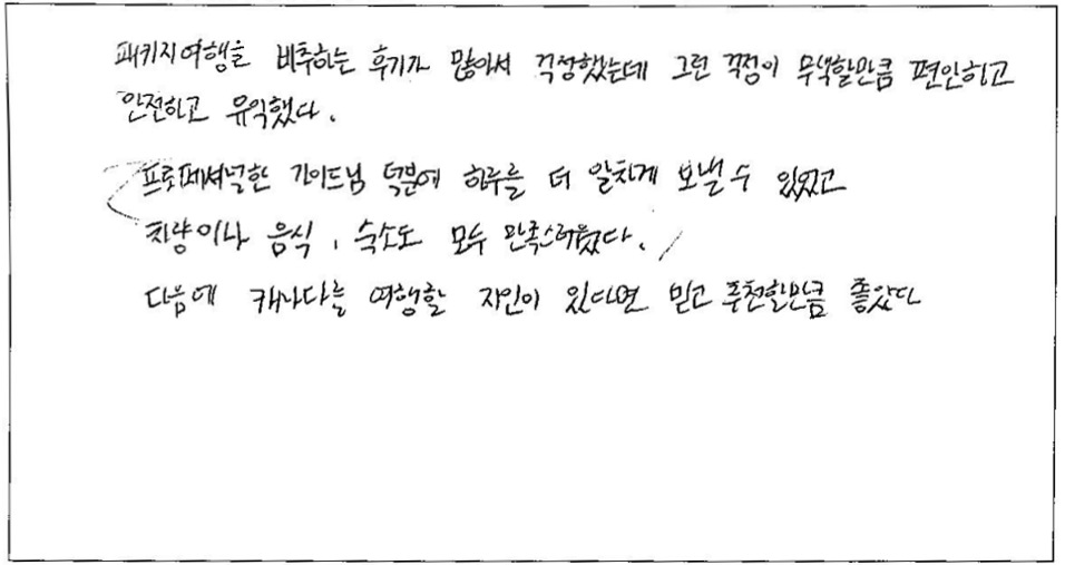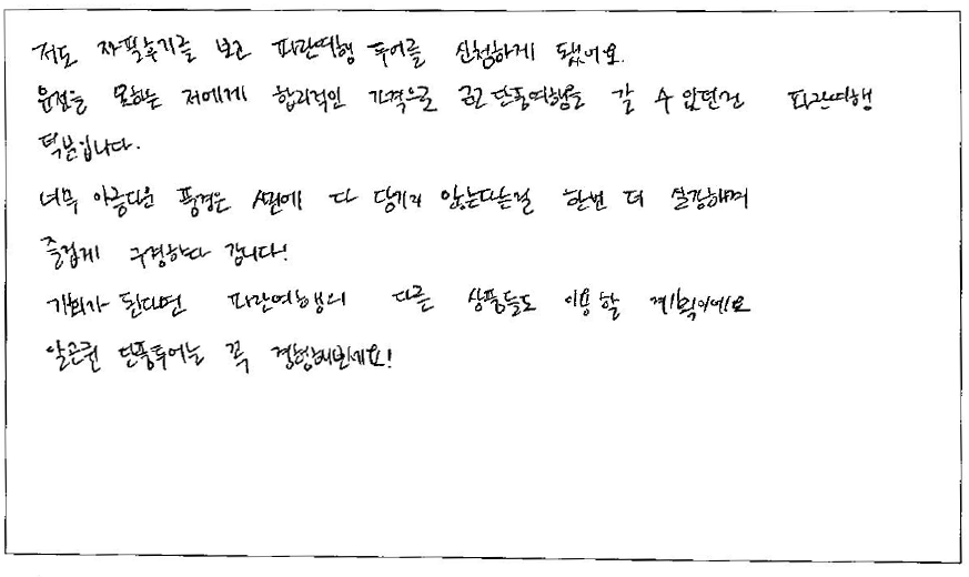 ‘파란여행’을 이용하신 고객님들이 직접 작성해주신 후기입니다.