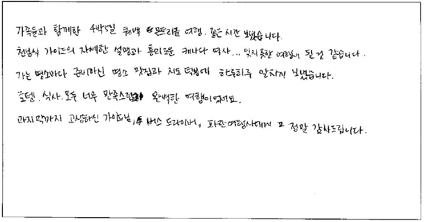 캐나다동부출발 여행상품의 시장점유율 96.89%가 입증하는 캐나다 최대규모 한인여행사 '파란여행'