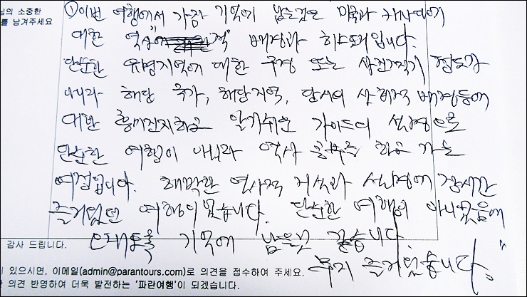 • '파란여행'과 함께한 여러분의 소중한 이야기를 들려주세요!