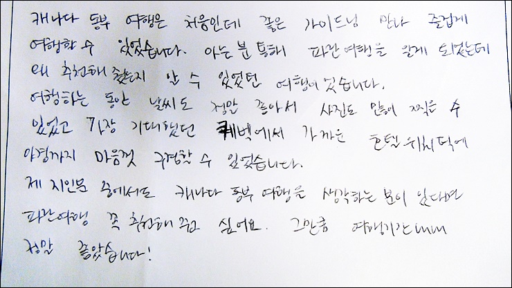 제목 2019년 07월 19일 퀘벡 2박3일 1호차 후기