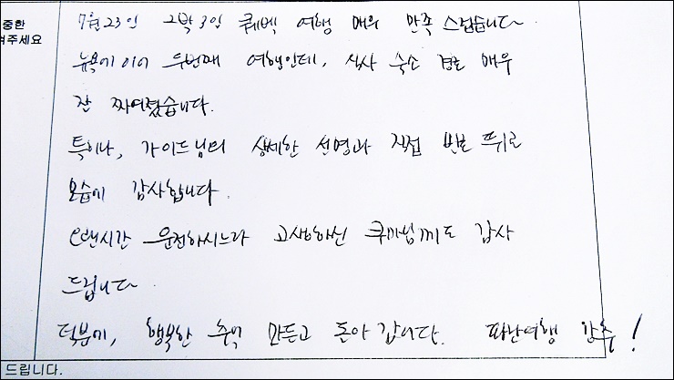 제목 2019년 07월 23일 퀘벡 2박3일 1호차 후기